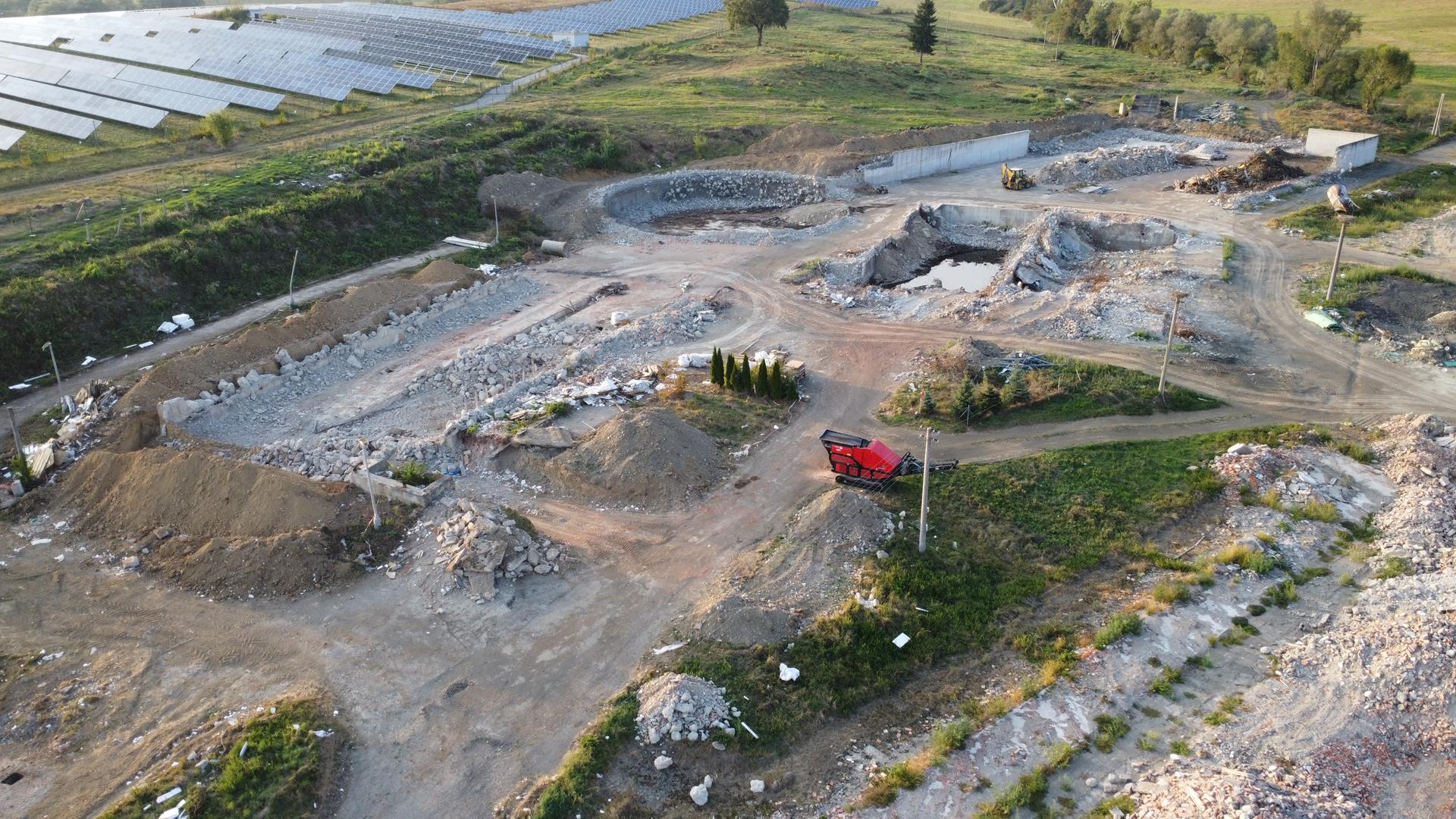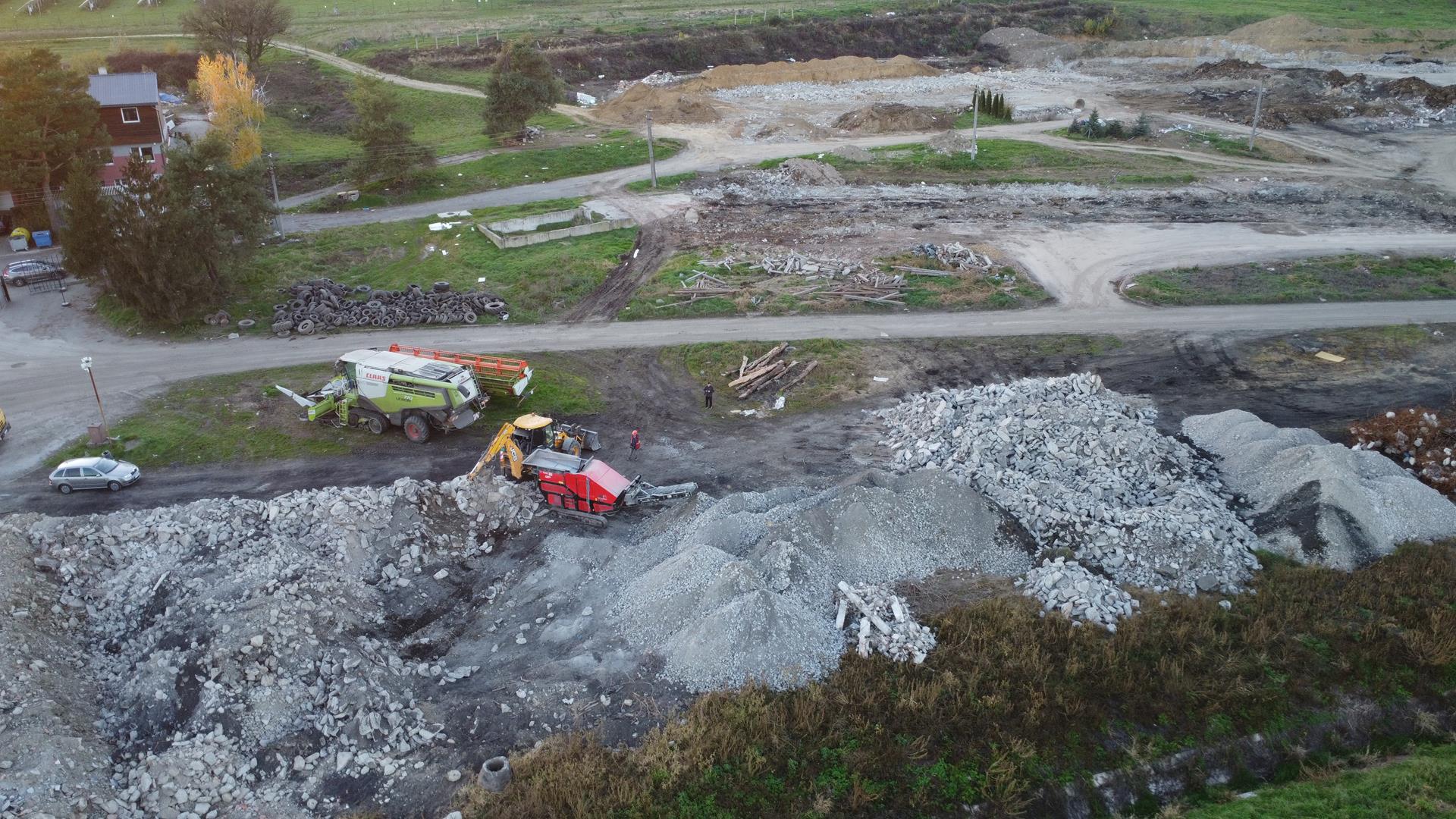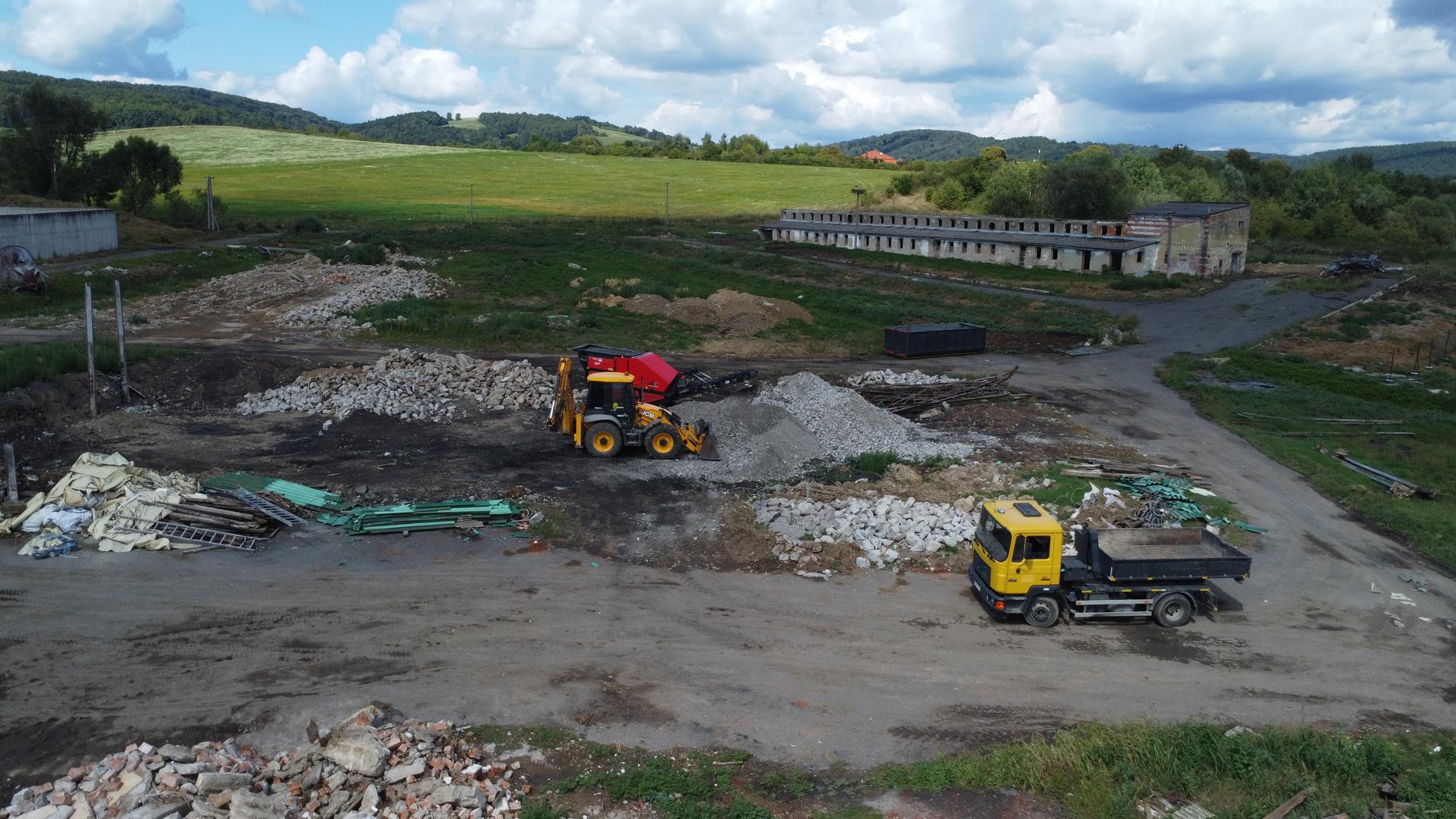 Po búracích prácach začíname drviť odpad, ktorý sa môže zhodnotiť v iných stavbách, ako podkladový materiál.