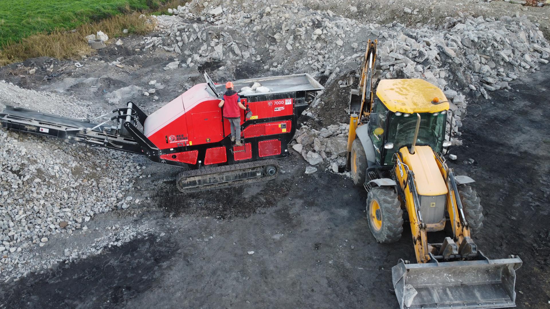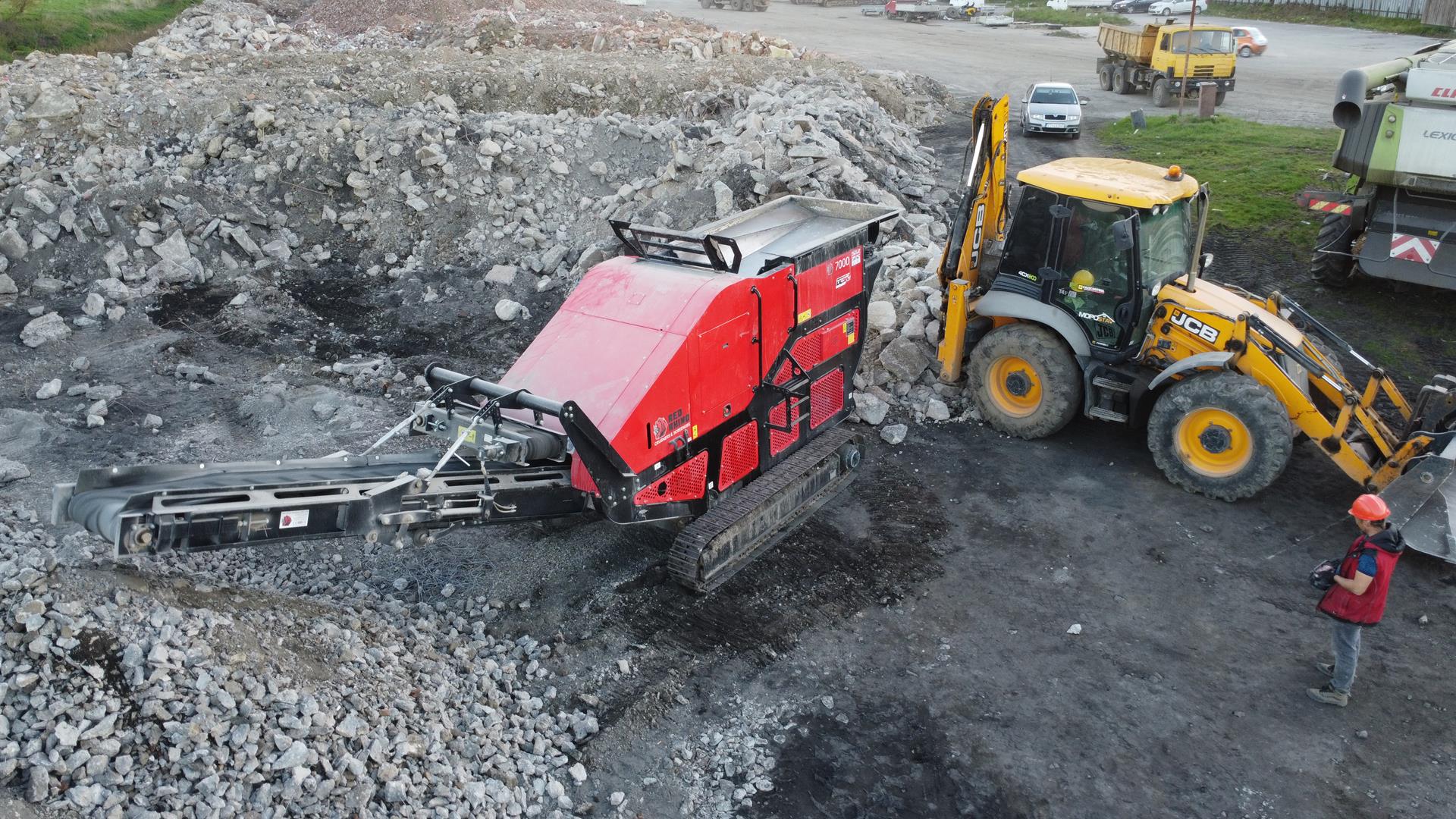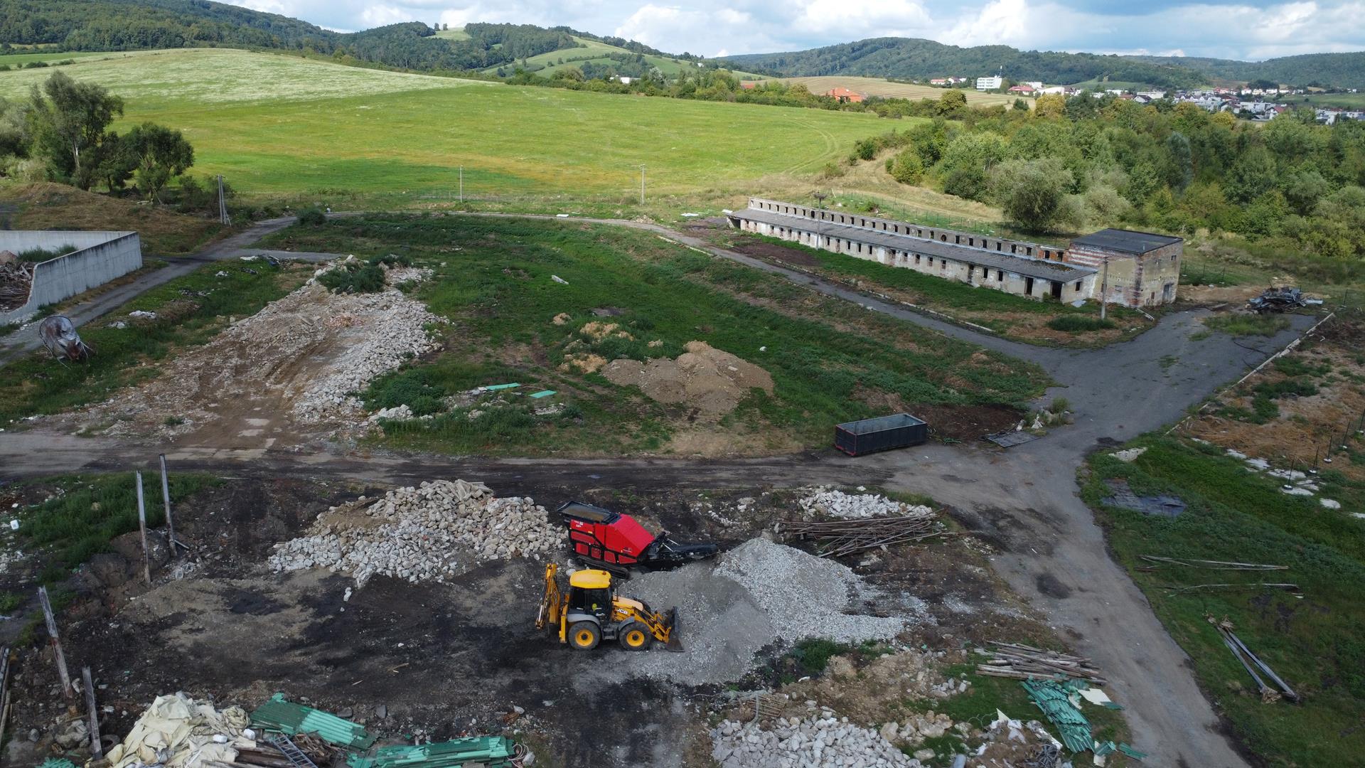 Po búracích prácach začíname drviť odpad, ktorý sa môže zhodnotiť v iných stavbách, ako podkladový materiál.